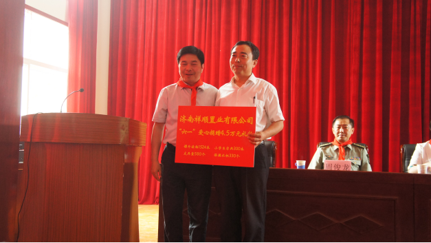 在六一兒童節(jié)到來之際,濟陽縣婦聯(lián)和祥生中央華府關(guān)注垛石鎮(zhèn)中心小學(xué)孩子的學(xué)習(xí)和健康成長,組織開展愛心捐贈活動。5月31日,濟陽縣委、濟陽縣人民政府、濟陽縣人大、濟陽縣政協(xié)及縣婦聯(lián)、縣教體局、濟南祥順置業(yè)有限公司等領(lǐng)導(dǎo)首先對垛石鎮(zhèn)幼兒園內(nèi)的孩子送去節(jié)日禮物,送去祝福和慰問,并跟孩子們進行了親切的互動。 濟南祥順置業(yè)有限公司總經(jīng)理徐建中應(yīng)邀參加了濟陽縣婦聯(lián)開展的這次活動,并為了改善孩子們的學(xué)習(xí)