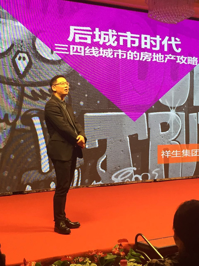 本次會議地點為普陀山祥生大酒店,祥生作為本次會議的東道主,董事長陳國祥先生在10月28日歡迎晚宴致辭,并與品牌房企、物業和金融機構進行戰略簽約儀式。10月29日發布會期間,祥生集團副總裁陳弘倪先生上臺領獎,執行總裁趙紅(微博)衛先生發表了題為《后城市時代三四線城市的房地產攻略》的主題演講。