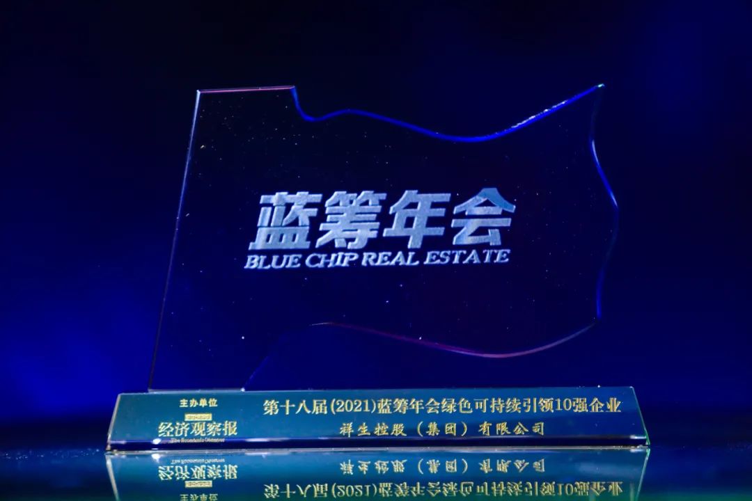 2021年5月25日,由經管傳媒、經濟觀察報主辦的“第十八屆(2021)藍籌年會在北京舉辦,祥生控股集團憑借積極參與中國房地產行業綠色綠色供應鏈行動、堅持四葉草計劃公益事業、綠色節能建筑設計等可持續發展戰略,榮獲第十八屆(2021)藍籌年會綠色可持續引領10強企業,同時榮獲2021品牌價值典范企業。