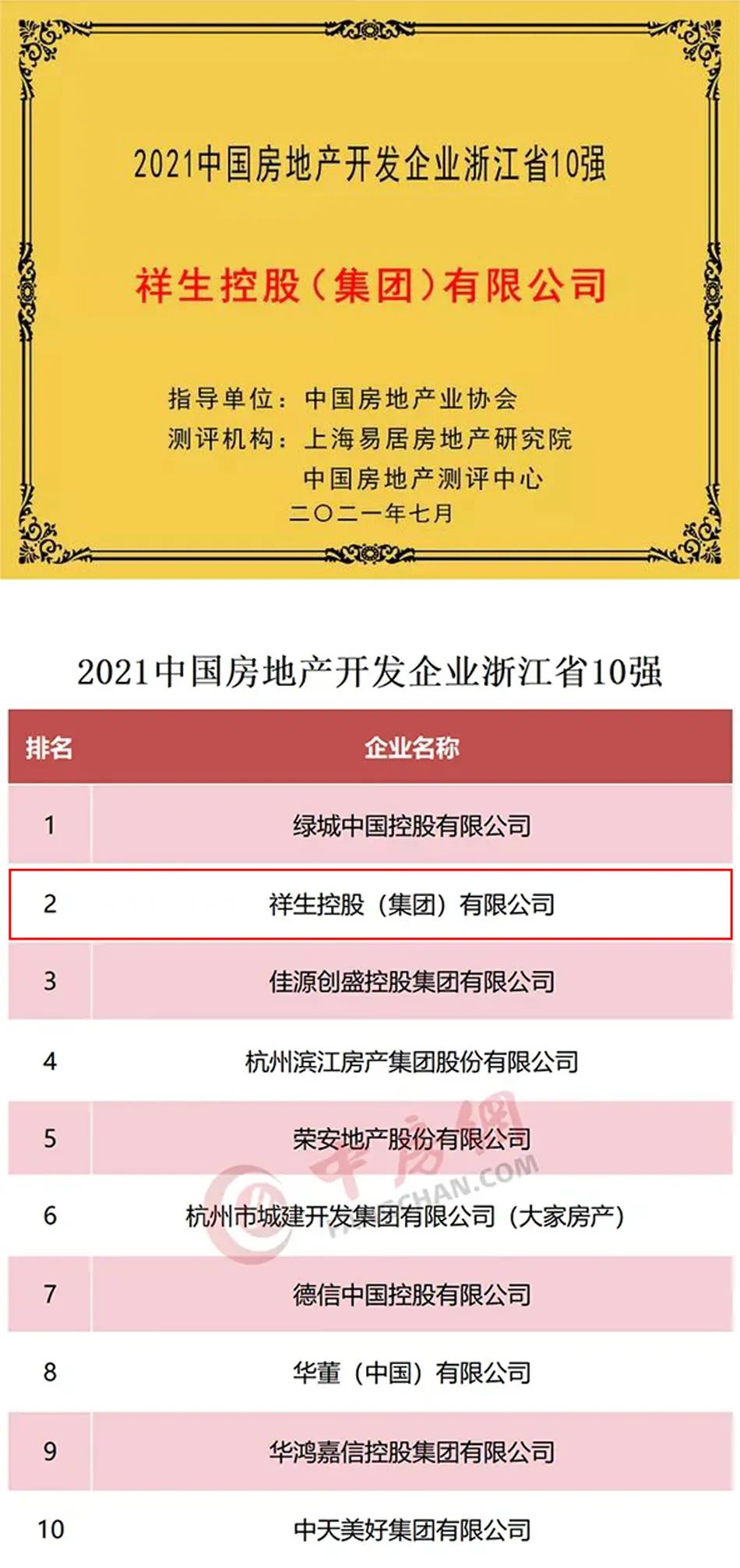 7月5日,上海易居房地產(chǎn)研究院中國房地產(chǎn)測評中心正式發(fā)布「2021中國房地產(chǎn)開發(fā)企業(yè)華東、華中區(qū)域測評研究成果」,祥生控股(集團)有限公司憑借扎實穩(wěn)重的投資戰(zhàn)略和不斷提升的產(chǎn)品服務(wù)榮獲“2021中國房地產(chǎn)開發(fā)企業(yè)浙江省TOP2”。