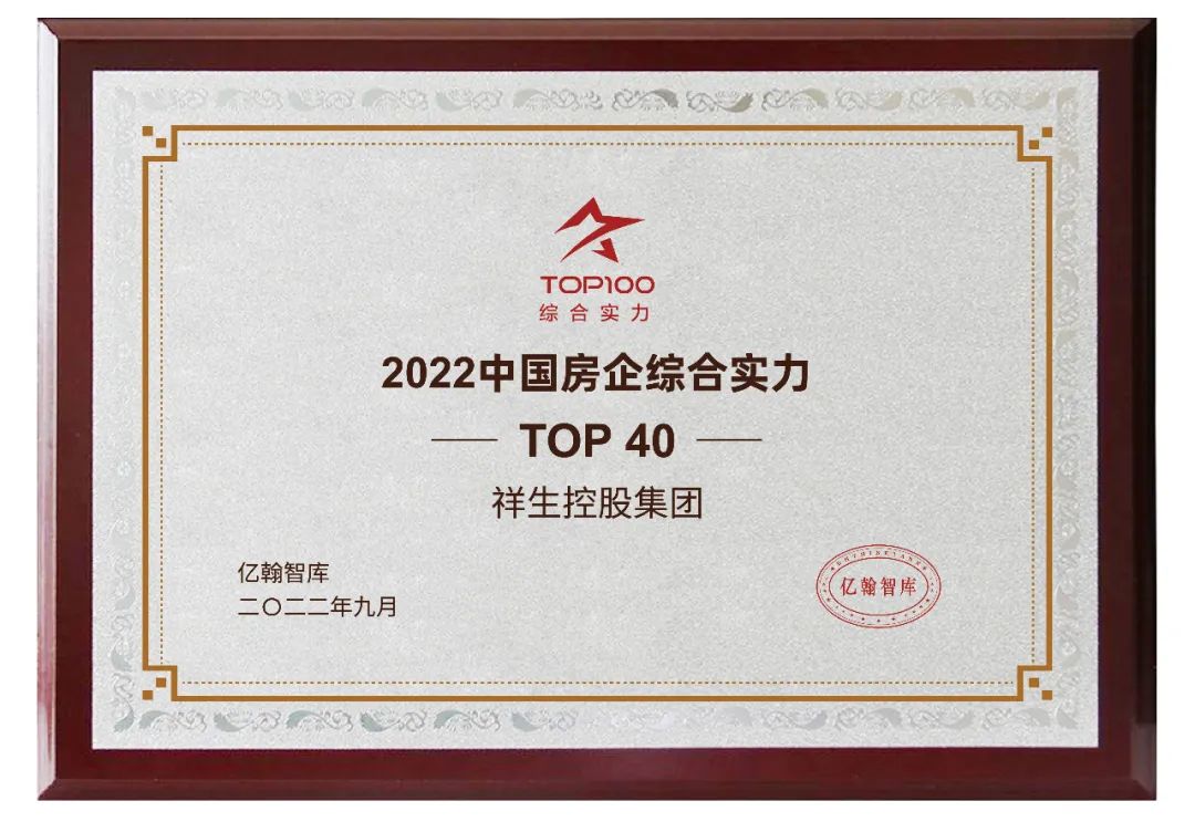 2022中國房企綜合實力TOP40是祥生控股集團在面對行業挑戰與外部不確定性因素的影響下,不斷提升綜合實力、不斷提升風險抵御能力的體現。